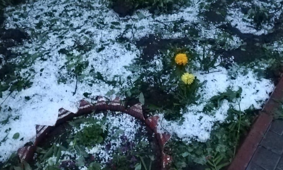 Крупные льдинки побили листья растений и практически полностью покрыли сады и огороды селян, угрожая оставить их без урожая.