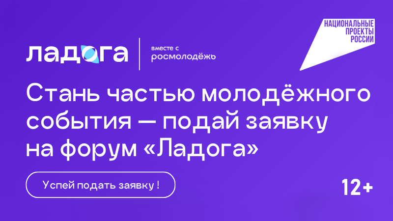 Всероссийский образовательный форум «Ладога» платформы Росмолодёжь.Форумы реализуются в рамках национального проекта «Молодёжь и дети». С 31 августа по 4 сентября в Ленинградской области пройдет форум, центральной темой которого станет сохранение традиционных духовно-нравственных ценностей и развитие проектов, приуроченных к 80-летию Победы в Великой Отечественной войне. Форум «Ладога» включает шесть направлений: «Код сообщества» – тем, кто собирает вокруг себя тех, кто готов действовать; «Код Правды» – для тех, кто разоблачает фейки и делает сильный контент; «Код Памяти» – для тех, кто бережно оживляет историю, сохраняет и передает наследие; «Духовный код» – для тех, кто ищет опору в себе, семье и традициях; «Код воспитания» – для тех, кто говорит с родителями и школьниками на одном языке; «Код Подвига» – для тех, кто говорит об истории на языке молодёжи. Участников ждут практические занятия и работа с реальными проектами, направленными на развитие лидерских качеств, гражданской пози