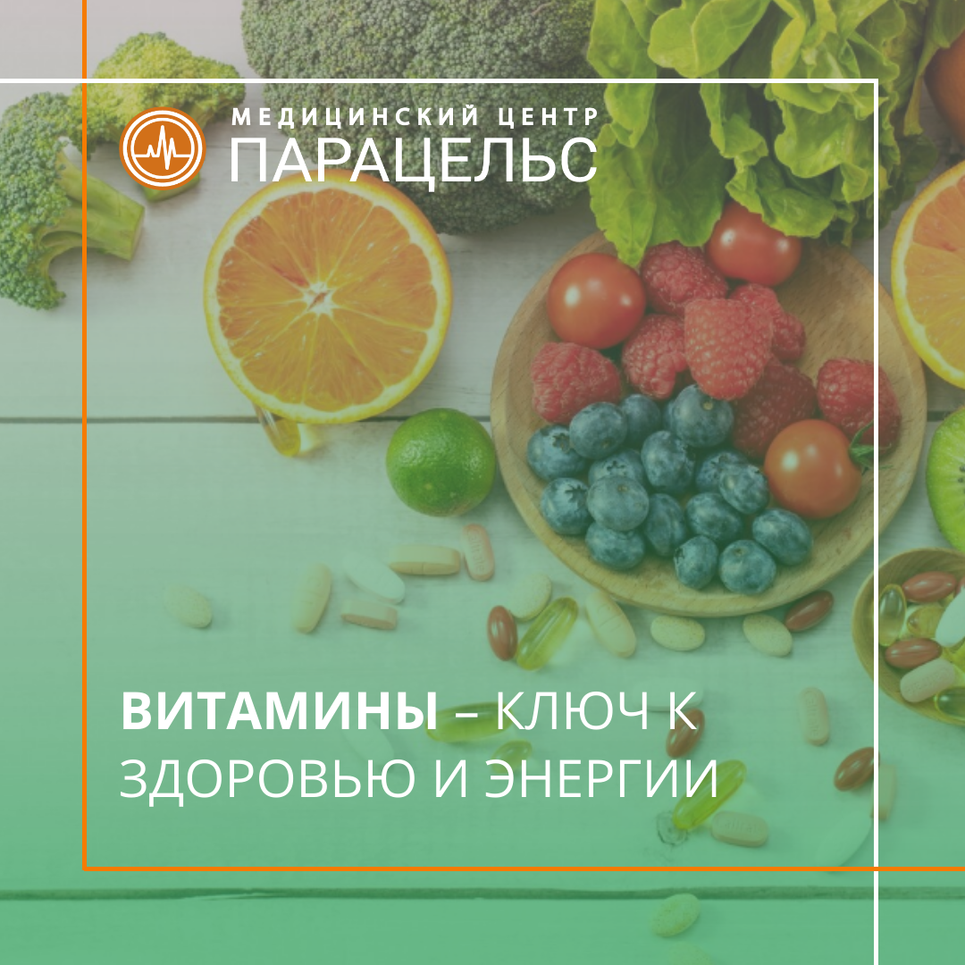 Витамины — это биологически активные вещества, которые необходимы для нормальной работы всего организма. Они участвуют в обмене веществ, укрепляют иммунитет, поддерживают работу сердца, нервной системы, кожи и других органов. Недостаток витаминов может привести к: 🔺 Повышенной утомляемости; 🔺 Снижению иммунитета; 🔺 Ухудшению состояния кожи, волос и ногтей; 🔺 Нарушениям работы ЖКТ; 🔺 Сбоям в работе нервной системы. Какие витамины особенно важны❔ ✅ Витамин С – укрепляет иммунитет, ускоряет заживление ран, улучшает состояние сосудов. ✅ Витамин D – необходим для крепких костей, усвоения кальция, поддержания иммунной системы. ✅ Витамины группы B (B1, B6, B12 и др.) – улучшают работу нервной системы, участвуют в энергетическом обмене. ✅ Витамин А – важен для зрения, здоровья кожи и слизистых оболочек. ✅ Витамин Е – мощный антиоксидант, защищает клетки от повреждений. Как восполнить дефицит витаминов❓ В Медицинском центре «Парацельс» до конца июня можно сдать анализы крови на витамины со