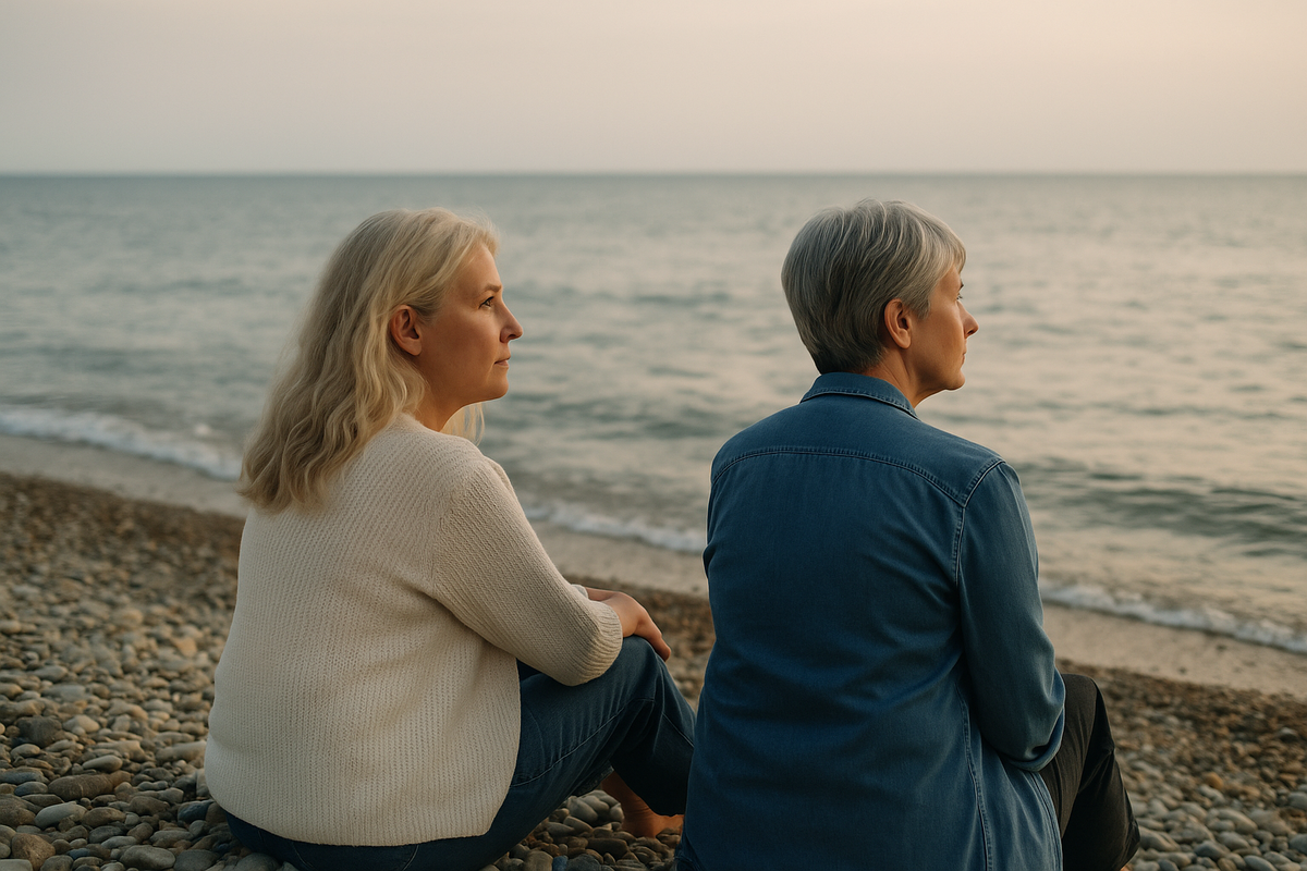 Ветер трепал её кофту, золотил волосы. Взгляд был устремлён вдаль — и казалось, что она смотрит не просто за горизонт, а дальше. Туда, где начинается то, о чём обычно молчат. Я подошла. Нерешительно. И всё же спросила: