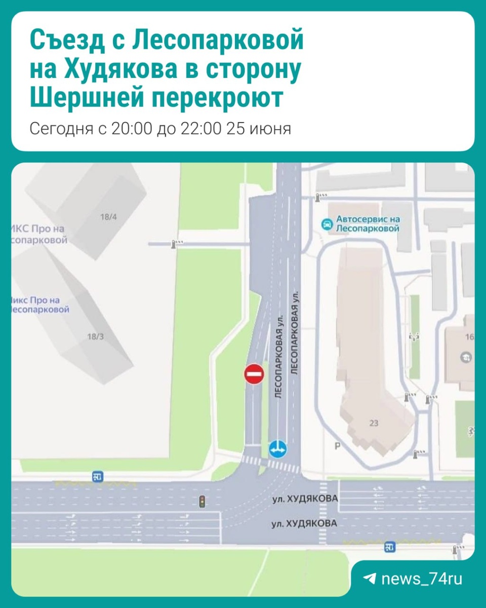Несем мини-перекрытие — 5 дней карман, через который водители поворачивают с Лесопарковой на Худякова в сторону Шершней, будет закрыт.