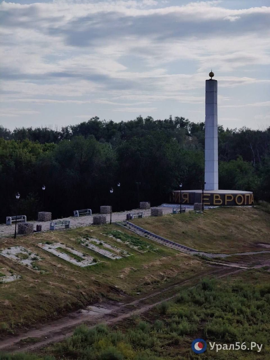 Площадь вокруг стелы Европа - Азия в Оренбурге до сих пор не привели в порядок после наводнения