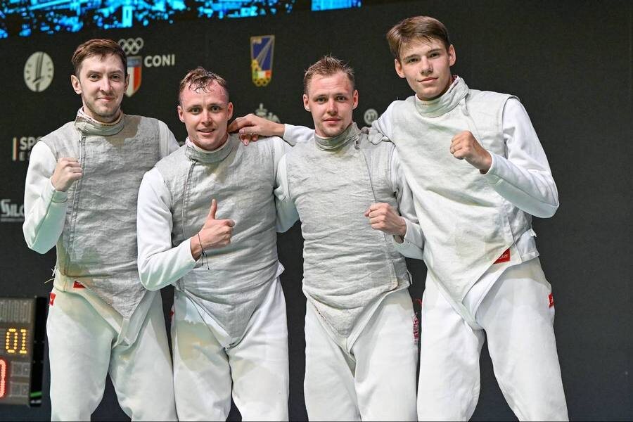19 июня в Италии завершился чемпионат Европы по фехтованию. В последний день турнира, проходившего в Генуе, бронзовые медали командного турнира на рапирах завоевала мужская сборная России, в составе которой выступали Владислав Мыльников из Курской области, Антон и Кирилл Бородачёвы, Александр Керик. Переколов соперников из Великобритании – 45:30 и Венгрии – 45:38, россияне в полуфинале скрестили клинки с хозяевами турнира. Упорная встреча завершилась в пользу сборной Италии – 45:40. Встречу за третье место с командой Бельгии российские рапиристы выиграли с крупным счетом 45:28, став обладателями бронзовых медалей чемпионата Европы. Сергей Яшин, фото Федерации фехтования России Постоянный адрес новости на сайте «Друг для друга» ~ https://dddkursk.ru/lenta/2025/06/20/119776/. Новости Курска за ~ 20 июня ~ июнь 2025 года.