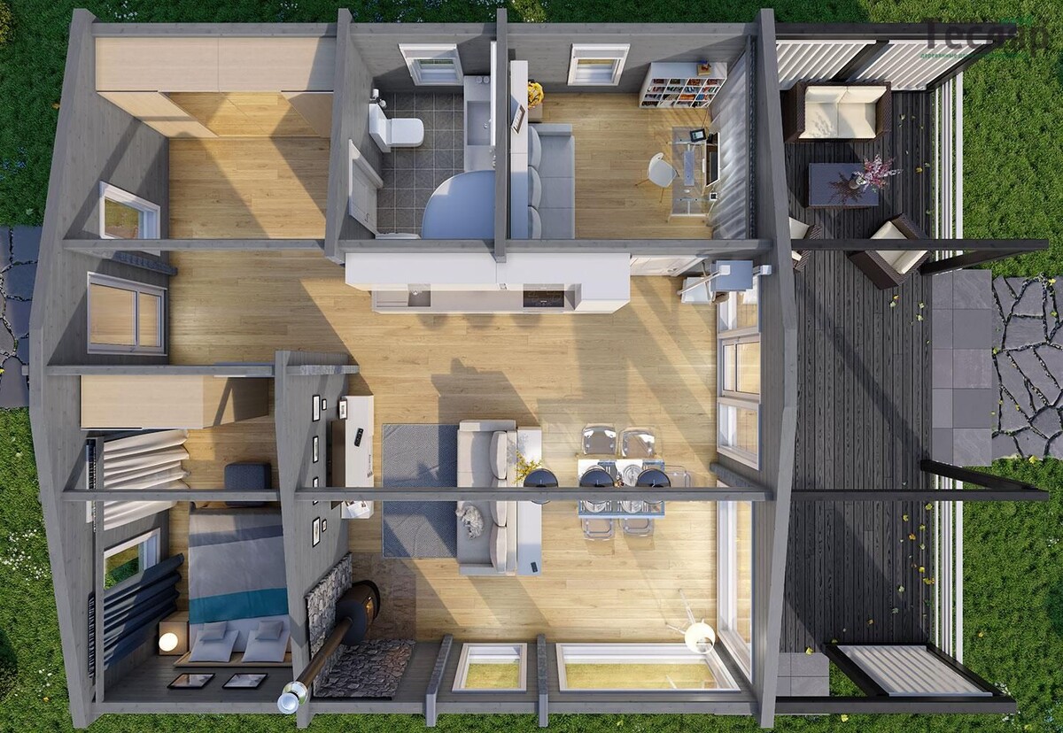 Гибкость планировки: Открытая планировка позволяет сэкономить площадь без ущерба для комфорта.