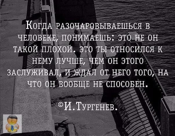 «Когда разочаровываешься в человеке, понимаешь: это не он такой плохой. Это ты относился к нему лучше, чем он этого заслуживал, и ждал от него того, на что он вообще не способен».