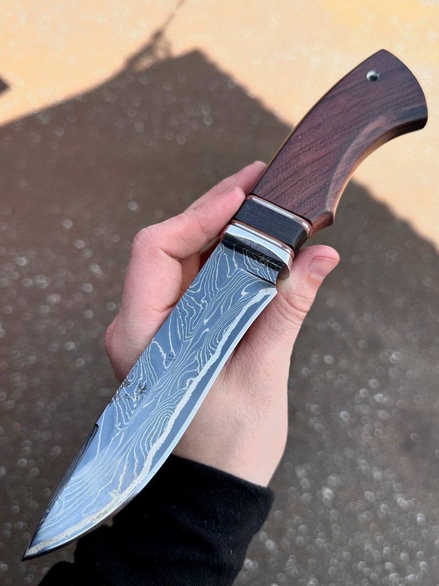 Рабочий нож «Варан» из сложного ламинированного дамаска с воронением