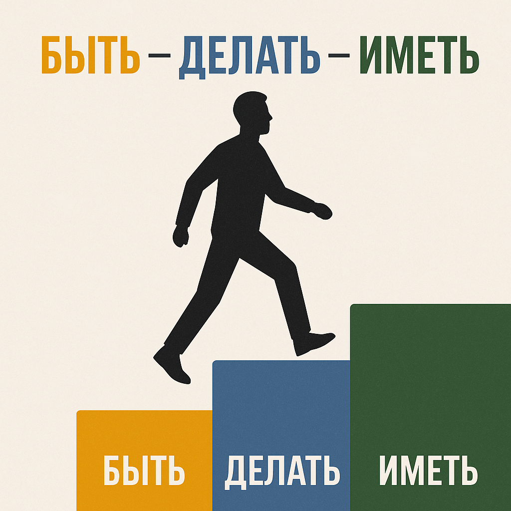 БЫТЬ → ДЕЛАТЬ → ИМЕТЬ — универсальная формула для любых целей, от небольших до самых амбициозных.