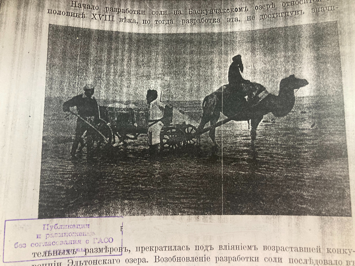 Разработка соли на Баскунчакском озере. Оказалось, что там соль гораздо чище, не то, что на Эльтоне, тут-то в озере вся таблица Менделеева. И тут добыча соли прекратилась, медленно и верно превратившись в лечебницу.