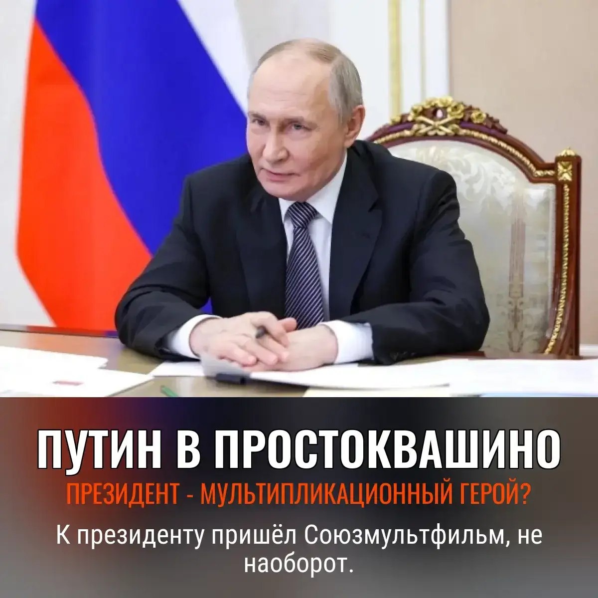 Владимира Путина пригласили на киностудию "Союзмультфильм", где главная интрига – не чай с печеньками, а появится ли он в новом сезоне "Простоквашино". Похоже, президенту предложили карьеру мультипликационного героя, к 90-летию студии. Секретная информация: пресс-секретарь Путина уверяет — Кремль не против, согласовывать не надо. Похоже, Простоквашино скоро будет прям совсем не прежним.,