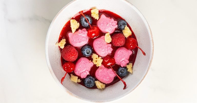 В кафе Hello Kitty & Friends (Театральный пр-д, 5, стр. 1, 6-й этаж) появились новые блюда — от омлета с тамбовским окороком, благоухающим трюфельным маслом, до ассорти разноцветных бургеров с печатями. Розовая матча с добавкой питахайи в этом кукольном кафе — самый востребованный напиток. — на местном кофе с молочной пенкой рисуют то котят, то щенков — все с ушками. «Апельсиновый раф» стоит 560 рублей, а маленький капучино — 400. Во время летнего московского похолодания этот кофе советую принимать ради хорошего настроения и продуктивного общения со своим внутренним ребенком; — «Розовая матча» (560 руб./300 мл) — отчаянно розовая субстанция с портретом Китти — мягкая композиция, розовый цвет тут организован при помощи сублимированной питахайи. Делаешь пару глотков и начинаешь требовать кукольный домик; — ассорти миниатюрных бургеров (1190 руб.) логично сопровождается капустным салатом коул-слоу. Черный, красный и обычный украшены мордочками-печатями Китти, Куроми и Мелоди. Котлеты — из