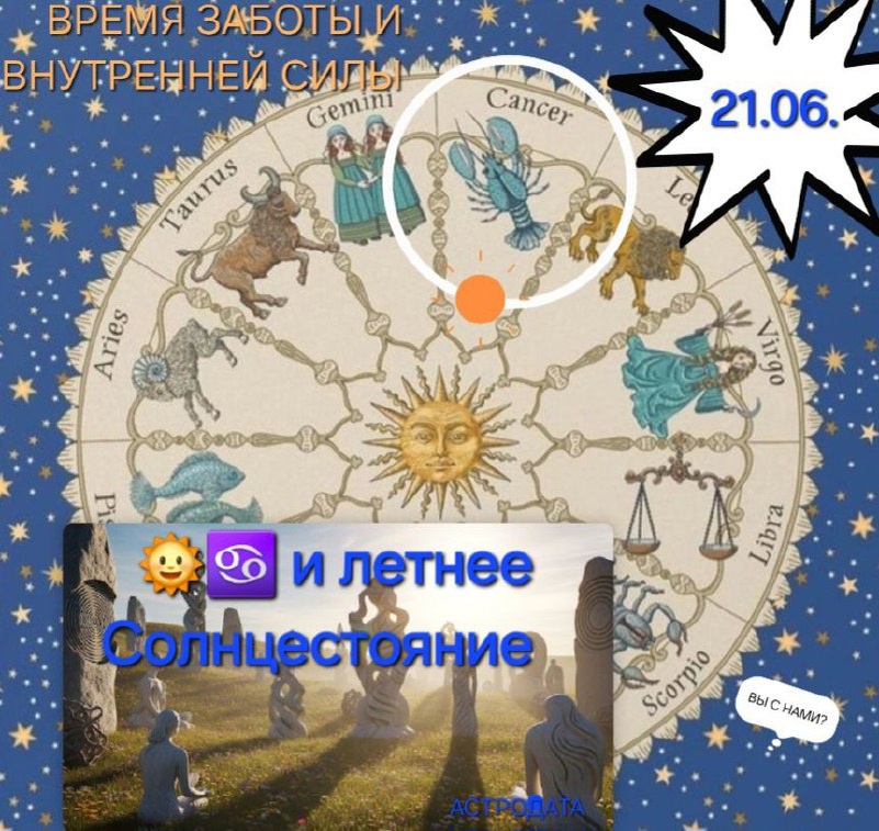 ПРИВЕТСТВУЕМ ВСЕХ! 😍🤗 На связи наш астрологический календарь! 🗓️ Солнце в Раке 🌞♋️ и летнее Солнцестояние 2025 года. Тема: "ВРЕМЯ ЗАБОТЫ И ВНУТРЕННЕЙ СИЛЫ". 🌅 21 июня 2025 года рано утром Солнце переходит в знак Рака (до 22 июля 2025), знаменуя начало астрологического лета и долгожданный момент ЛЕТНЕГО СОЛНЦЕСТОЯНИЯ. Это самый длинный день в году, наполненный особой, мощной энергией, которая зовет нас обратить внимание на самые сокровенные уголки нашей души. 🕰 Время для глубокого самопознания, личностного роста и сейчас наша школа дарит скидки на все курсы до конца июня! Откройте для себя новые грани астрологии и выберите программу, которая откликнется вашей душе. У вас есть возможность узнать себя и близких лучше. 👉 Переходите по ссылке и выбирайте курс по душе: https://astrodata.pro/ Читайте далее в комментариях... 👇 #астрология #астродата #солнце_в_рак #astrodata