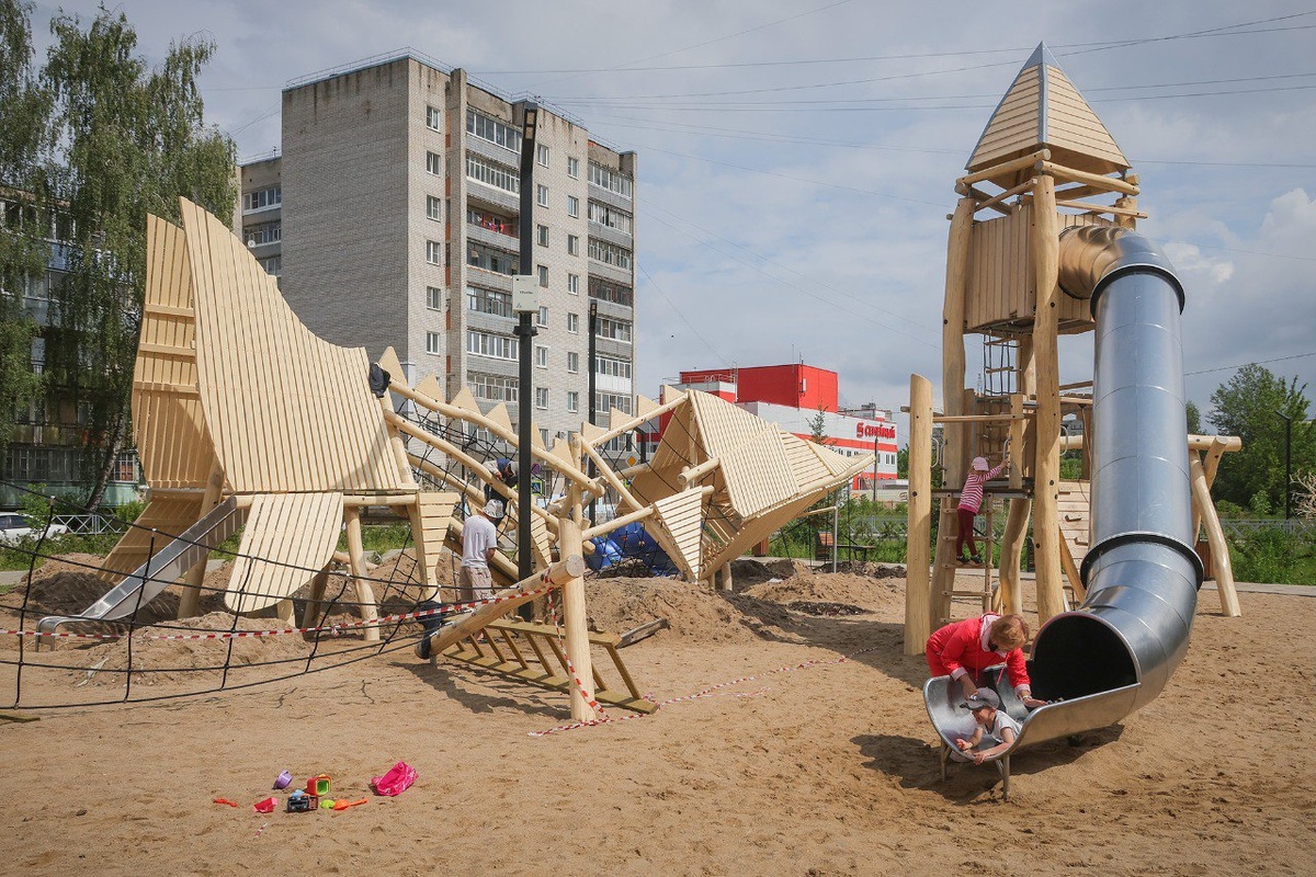 — 15-метровая деревянная стерлядь — финальный элемент детской игровой площадки. Постарались сделать ее насыщенной и эстетичной, — говорит глава Рыбинска Дмитрий Рудаков.