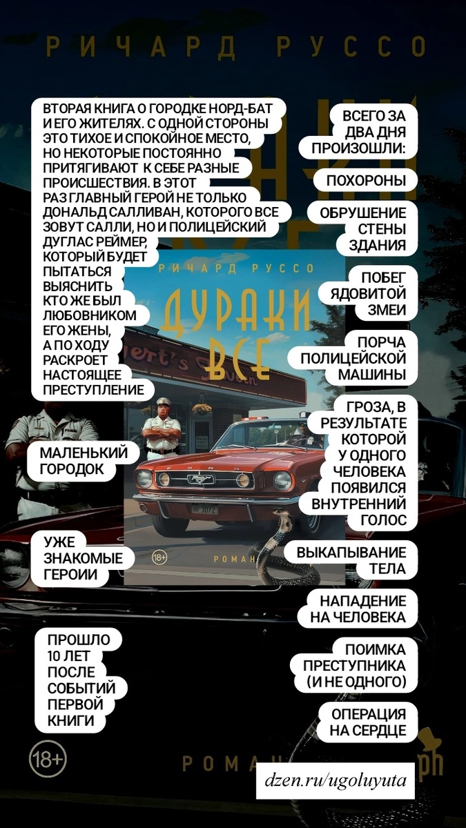 Послушала "Дураки все" - ироничная книга о маленьком городке. Это вторая часть трилогии. Действие происходит через несколько лет после событий первой книги "Дураков нет". Сюжет охватывает всего два дня из жизни главных героев (здесь их будет два), но они будут очень насыщенные и с экскурсом в прошлое. По ощущениям Норт-Бат - городок, где уже всех знаешь: Салли, Руб, Карл Робак, Дуглас Реймер, Рут, Дженни, Питер, Рой Пурди - как будто соседи, которых давно не видел и узнаешь все их новости за прошедшее время. Снова драматично-трагично и смешно одновременно. Очень мне нравится этот автор, если ещё не читали - попробуйте любую книгу (все интересные, в похожем стиле, про жизнь), вдруг вам тоже понравится.