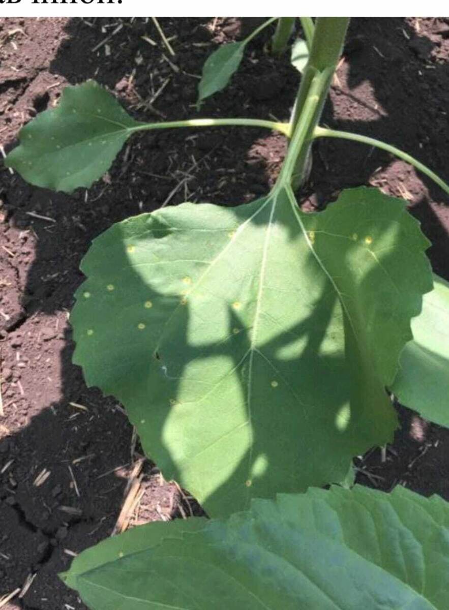 Отдел защиты растений филиала ФГБУ «Россельхозцентр» по Республике Башкортостан сообщает, что при проведении фитосанитарного обследования на посевах подсолнечника отмечается поражение нижнего яруса листьев растений ржавчиной. Для развития и распространения болезни складываются благоприятные погодные условия (умеренная температура 18-20ºС, осадки, росы). Через 5-7 дней после заражения на нижней поверхности листа и изредка на верхней образуются ржаво-бурые порошистые подушечки. Эта стадия развития представляет наибольшую опасность для растения, так как болезнь устойчива к неблагоприятным условиям и продолжительно (до 6 месяцев) сохраняет жизнеспособность. В дальнейшем уредопустулы образуются не только на листьях, но и на черешках, а также на внешней и внутренней стороне листовой обёртки корзинки. Листья преждевременно засыхают и растения образуют щуплые семянки. Урожай семян с больных растений снижается на 14-38%, содержание масла в ядрах – на 4-12%. В конце вегетации подсолнечника ржаво