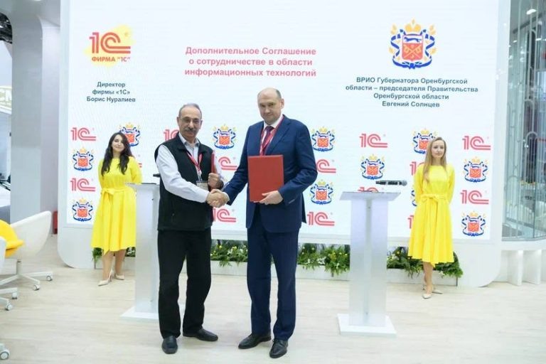 На Петербургском международном экономическом форуме стороны заключили дополнительное соглашение о сотрудничестве в сфере информационных технологий. Врио губернатора Евгений Солнцев и директора фирмы «1С» Борис Нуралиев в ходе рабочей встречи определили перспективные направления сотрудничества по цифровизации отраслей и развитию информационно-образовательной среды региона. Благодаря дополнительному соглашению Оренбуржье расширит взаимодействие в сфере цифровой трансформации государственного управления. В списке направлений сотрудничества — обмен опытом, знаниями и технологиями для унификации работы государственных учреждений, масштабирование импортонезависимых решений, формирование цифровых платформ в ключевых отраслях экономики и социальной сферы, использование технологий искусственного интеллекта для обработки и анализа данных. – Мы давно активно развиваем сотрудничество с фирмой «1С». Рассчитываем, что взаимодействие в рамках дополнительного соглашения ускорит цифровизацию государств
