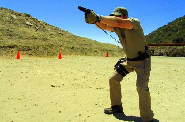 · Выравнивание ствола и руки. Пистолет должен быть «настроен» так, чтобы отдача шла прямо по оси предплечья и туловища. В противоположность этому – глубокий наклон ручки или крученое запястье – приводит к травмам и плохому контролю. Прижмите прямую руку так, чтобы линия ствола продолжала линию предплечья.