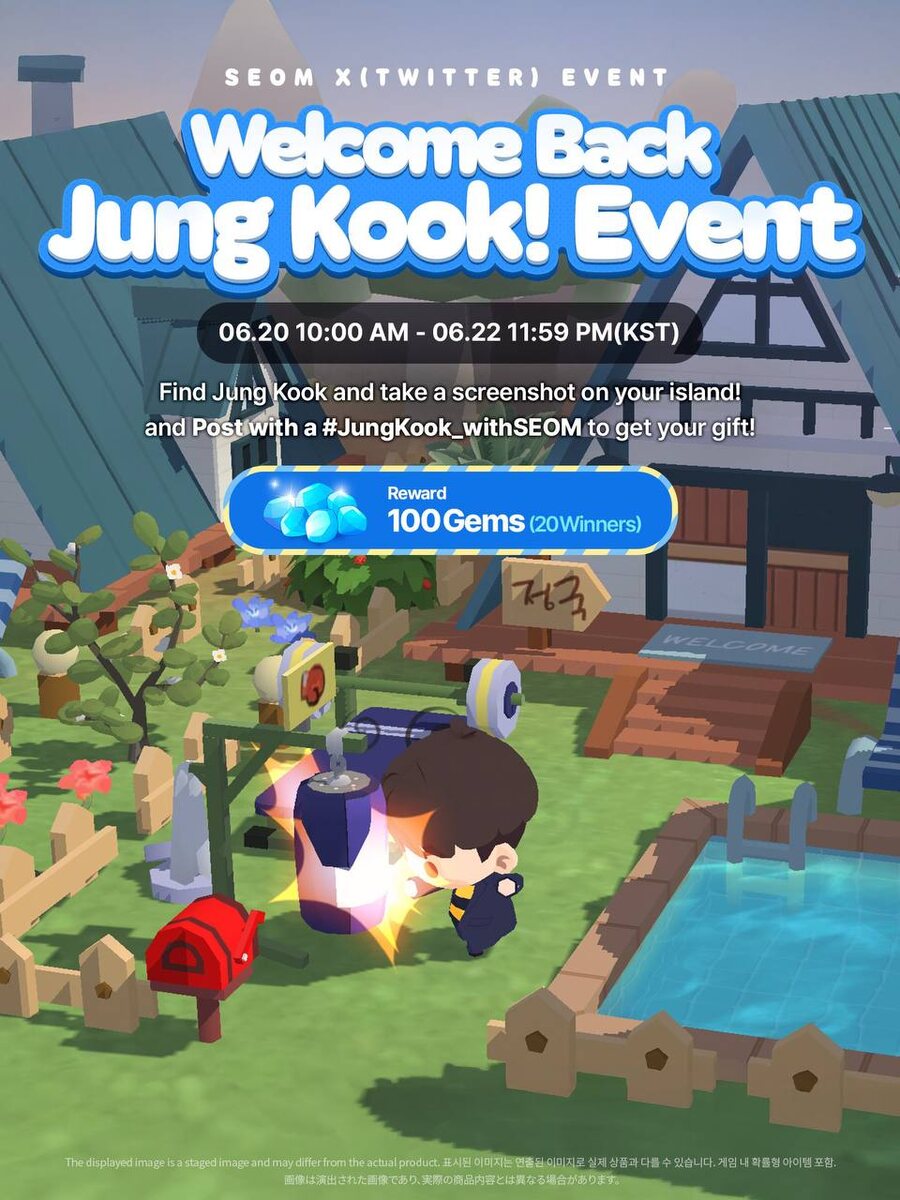 🍊 BTS Island In the Seom в X: 🥰 С возвращением, Чонгук! Событие Наш золотой макнэ 🐰 Чонкуки, ты хорошо поработал! 🥳 Сделайте скриншот персонажа Чонгука в In The Seom и оставьте комментарий с хэштегом JungKook_withSEOM + ваше имя пользователя, чтобы принять участие! 💕 🏝 Ссылка на игру #InTheSeom 🐈🌸[https://dzen.ru/id/5f3ce54ccaeef80d2efd6e05]🌸🐈
