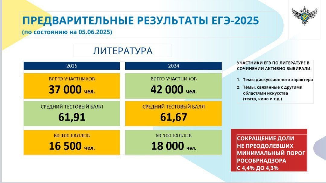 🔥 Предварительные итоги ЕГЭ. В Рособрнадзоре представили предварительные итоги Единого Государственного экзамена основного периода.