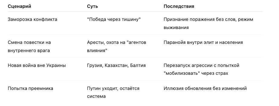 Это не просто финал главы. Это финал целой политической эпохи, где власть выживала не за счёт развития, а за счёт вымогательства под покровом величия. Финал эпохи, в которой идея "победы любой ценой" обнулила сам смысл победы.
