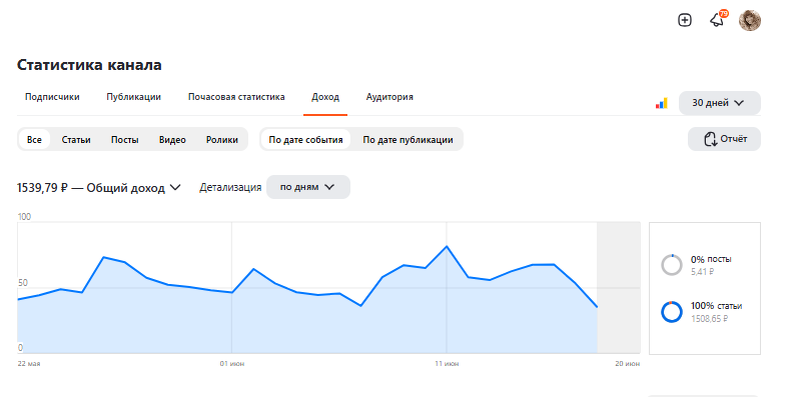 С изменением условий монетизации (видео и ролики теперь не оплачиваются), снизился и заработок, и сейчас он составляет 1500 рублей в месяц: