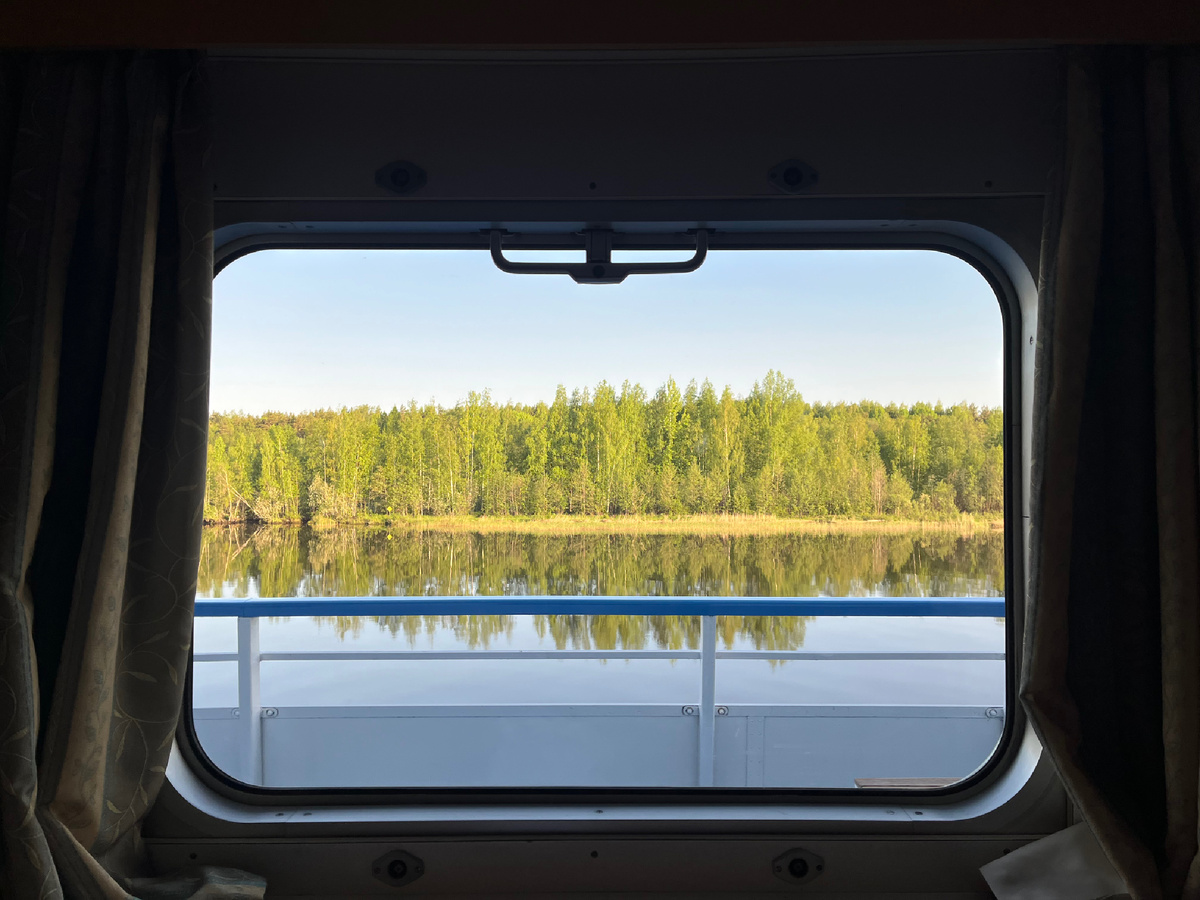 Начался мой день с прекрасных видов из окна каюты. А вот как спалось… это отдельное приключение…