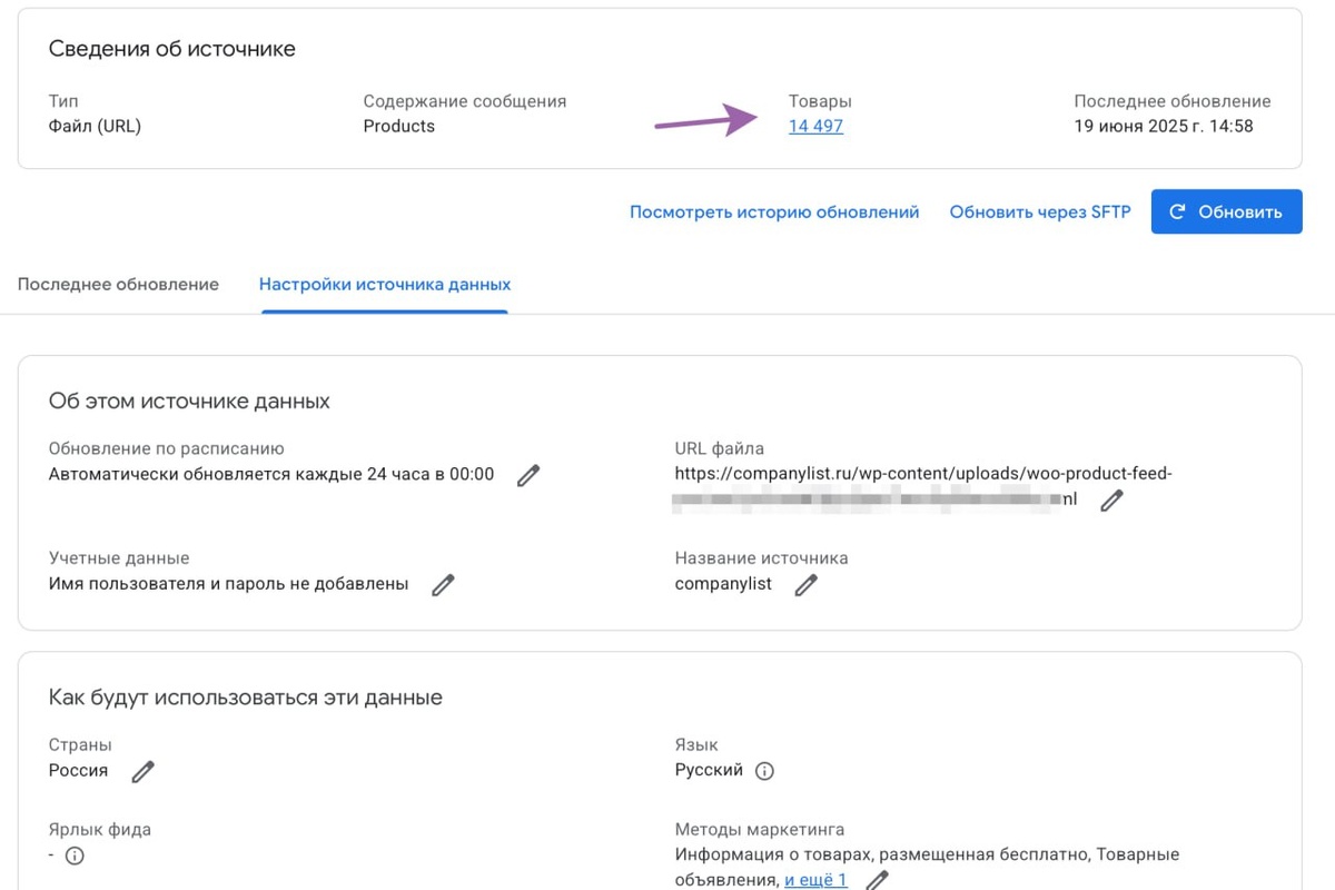 Напомню, что вы можете абсолютно бесплатно продвигать свои товары в Google Merchant если настроите товарный фид. Причем можно так загружать и цифровые товары, не с нулевой ценой (я жду модерацию, хз пройду ли). На картинке я залил базы компаний с companylist.ru ... Всего 14к баз. Т.к. у нас сайт на WordPress, то генерация фида заняла 30 минут с помощью бесплатного плагина. Мне говорили, что такой механизм дает клики на сайт от Гугла. Русский ИТ бизнес
