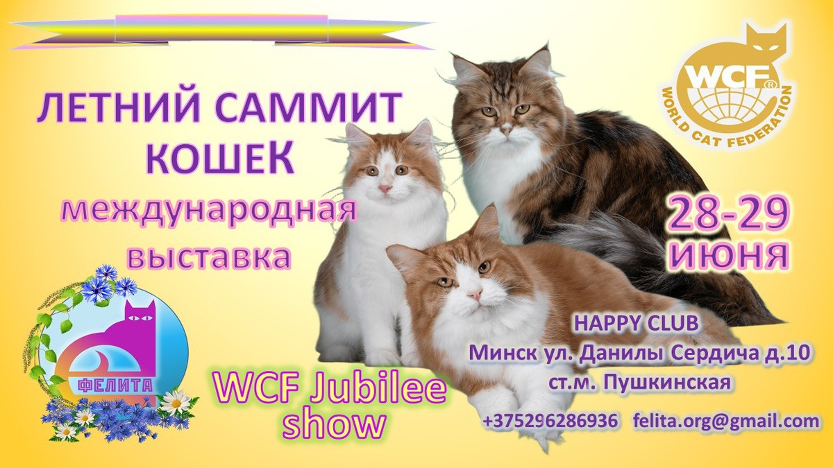 ⏰ 28 - 29 июн (8д) 🏛 #Минск #Беларусь #Выставка 😽 Выставка кошек и котов: Летний саммит кошек 2025 🏆 Белорусский Фелинологический Центр «Фелита» Контакты и вопросы организаторам здесь: 🌐 https://www.sunny-cat.ru/vystavki-koshek.php?mesto=74-minsk WCF " ЛЕТНИЙ САММИТ КОШЕК "- Минск Фелита WCF JUBILEE SHOW 3 оценки за два дня выставки Выставка работает на программе BestCat в режиме online Регистрация - на почте felita. org@gmail. com Вся информация о выставке и заявочный лист в группе в Telegram – Felita Cat Club +375296286936 Текущую информацию по выставке Вы найдете: - VKontakte - https: //vk. com/yaninacatbelarus - Telegram - +375296286936 FelitaCatClub В программе выставки монопородные шоу: Абиссинские Персидские и экзотические кш Сибирские Британские кш и дш WCF ринги котят, юниоров, взрослых и ньюте…