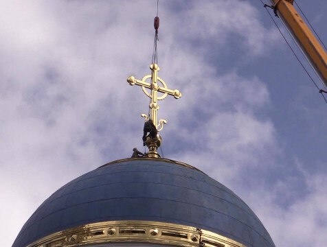 Новый крест установили на купол Успенского собора Свято-Тихоновой пустыни