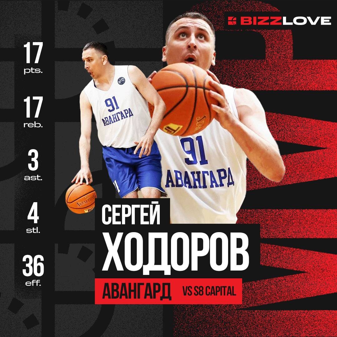 MVP ABL Bizz💥 Ходоров Сергей (Авангард) vs S8 Capital Bizz Love 62:40 17 очков, 17 подборов, 3 передачи, 4 перехвата, 36 эффективность Ходоров делал разницу в игре на протяжении всей встречи с S8 Capital. Сергей закончил каждую четверть матча, лидируя по показателю эффективности в составе обеих команд. Большой Авангарда приносил пользу команде на обеих сторонах площадки, собрав дабл-дабл из 17 очков и 17 подборов и сделав в защите 2 блок-шота и 4 перехвата. Сможет ли Ходоров показать такую же уверенную игру против грозного Ингосстраха? 1️⃣@ABL Moscow