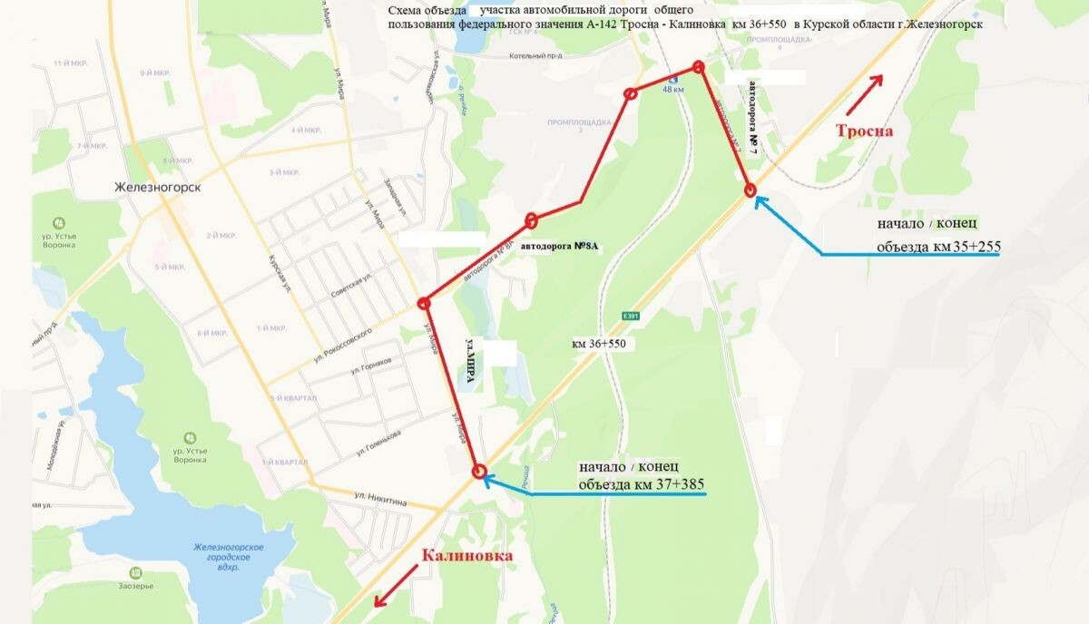 Водителям придётся воспользоваться объездным маршрутом через город Железногорск. Власти просят автомобилистов учитывать эту информацию при планировании поездок.