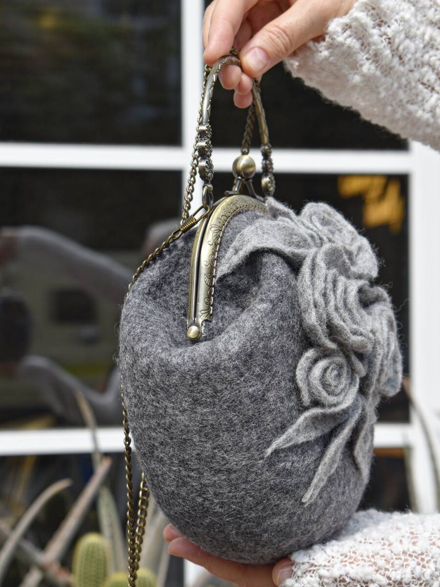 Сумочка объемным декором в серых оттенках