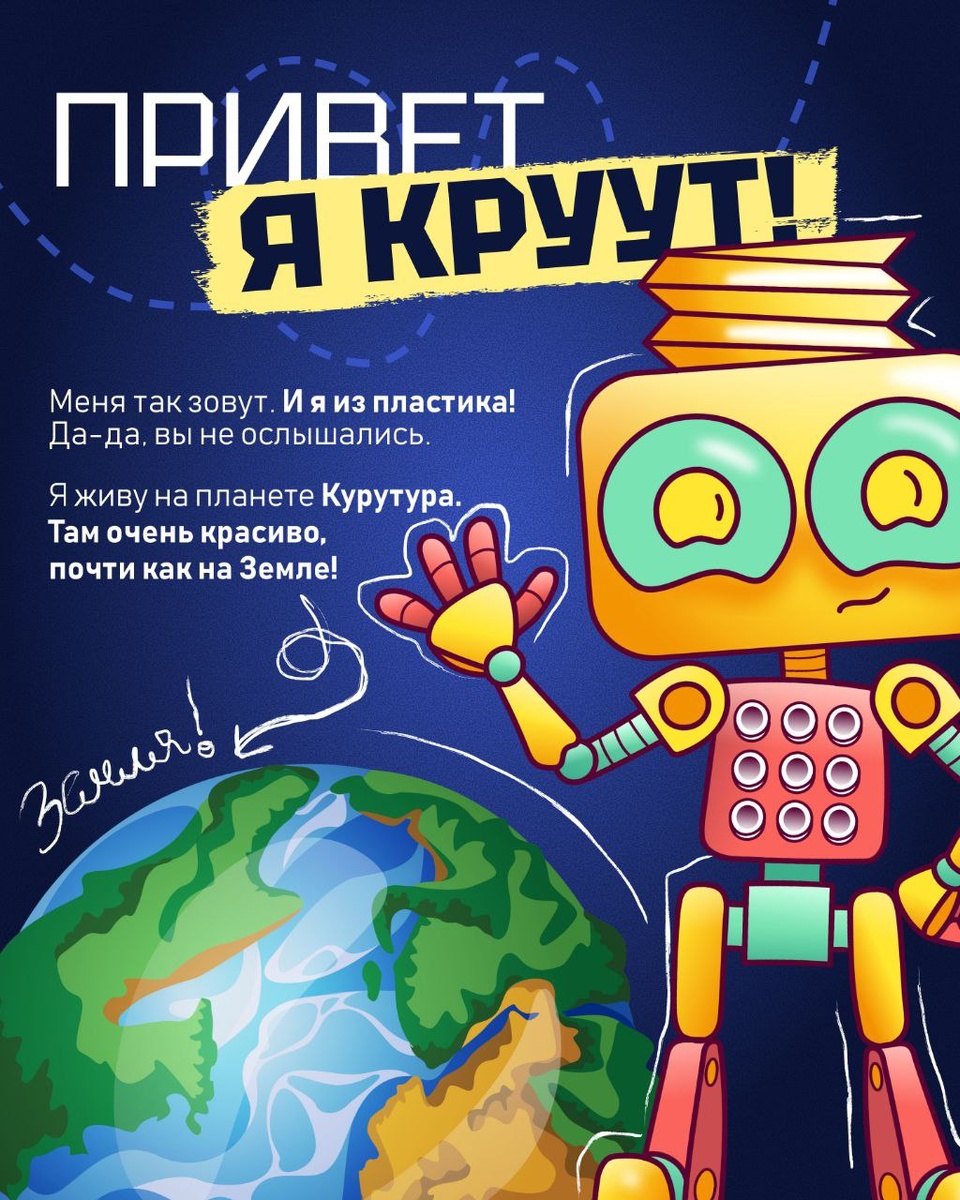 🛸 Привет! Я Круут — и это мой мир 🚀 Знакомьтесь, я Круут! Добрый, весёлый, пластмассовый и всегда на связи 👋 Я живу на яркой и удивительной планете Курутура, где всё вокруг вдохновляет: мягкие луга, волшебные растения и звёзды так близко, что кажется — до них можно дотянуться рукой ✨ У меня есть простая, но большая мечта — построить настоящий Галаскат и стать капитаном космического корабля! 🌌 А пока я танцую, изобретаю, летаю и, конечно, устраиваю самые весёлые вечеринки в Роборумбе!