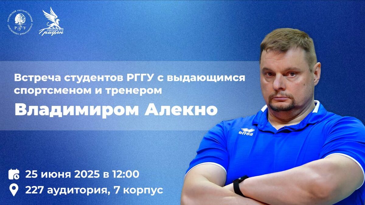 🎤 «Для великого результата нужен фанатизм» — Владимир Романович Алекно В Российском государственном гуманитарном университете состоится встреча с выдающимся спортсменом и тренером — Владимиром Романовичем Алекно, чемпионом Олимпийских игр в Лондоне, многократным победителем чемпионатов России, Лиги чемпионов, Мировой лиги по волейболу. Владимир Романович — советский и российский волейболист, мастер спорта СССР, заслуженный тренер России, человек, который не просто добился высот в спорте, но и вдохновил тысячи на путь упорства и побед. 📅 Дата: 25 июня 🕛 Время: 12:00 📍 Место: 227 (7 к.) 💬 Тема встречи: «Для великого результата нужен фанатизм» — о профессиональном спорте, мотивации, лидерстве, патриотизме и том, как вера в дело жизни ведет к вершинам. 😎 Организатор встречи Спортклуб «Грифон» Департамента по работе с молодёжью. Не упустите возможность услышать личную историю побед от легенды мирового волейбола! ⚪ Подписаться на РГГУ #РГГУ #СпортРГГУ #СтудентРГГУ
