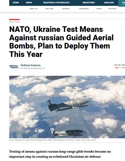 Украинское англоязычное военное издание Defence Express сообщает, что НАТО и Украина провели испытания средств против российских КАБ и планируют разворачивать их до конца 2025 года. Отмечается, что в настоящее время у Киева нет эффективных средств борьбы с планирующими авиабомбами. Техническое решение было разработано при участии трех стартапов: Alta Ares (Франция), ATREYD (Франция) и TYTAN Technologies (Германия), каждый из которых внес свои компоненты в итоговую многослойную систему ПВО. Причем речь идет не только о борьбе с управляемыми авиабомбами, но и о защите от других угроз, таких как, например, ударные БПЛА типа Shahed, пишет издание. Alta Ares отвечает за систему обнаружения, идентификации и прогнозирования траектории полета планирующих бомб. Atreyd и Tytan — за решение на основе зенитных дронов, в частности, создание роя дронов-камикадзе для формирования стены дронов. Сообщается, что все это реализуется под эгидой проекта NATO Innovation Challenge, о котором стало известно в