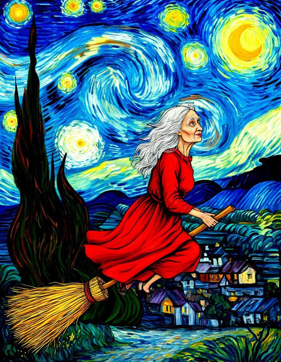 «Сегодня видел ведьму, летящую над Монмартром. Сначала подумал — галлюцинация от абсента. Но она махнула мне рукой и закричала: “Солнце — это ты! Гений – это ты! Рисуй, Винси!” Я рисовал. Звёзды — это, кажется, были её подруги»