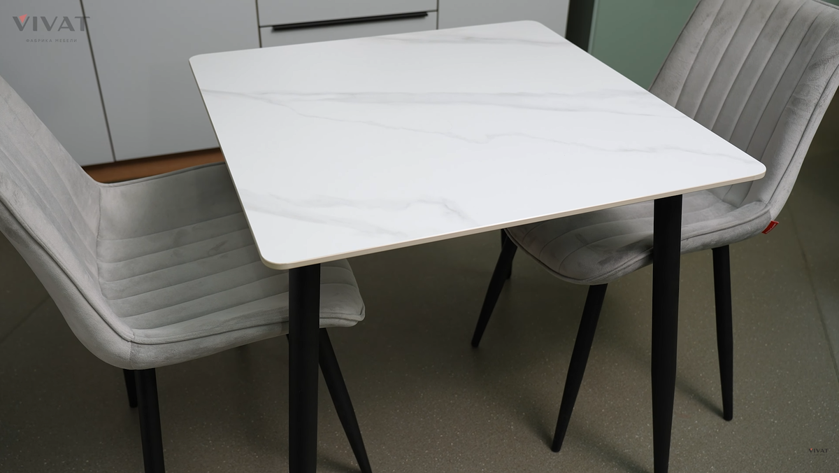 Как часто вы задумываетесь о том, насколько важно сочетание обеденной зоны с кухней? Ведь даже самая красивая кухня не будет выглядеть гармонично, если обеденная зона выбивается из общего стиля. Именно поэтому в Фабрике мебели Виват мы не только создаем кухни, но и предлагаем столы и стулья в едином стиле, чтобы все смотрелось идеально. И сегодня мы делимся советами, которые помогут легко подобрать обеденную зону к кухне. Обеденная зона — это не просто функциональное пространство. Это место общения, семейных обедов и вечерних посиделок. Размер и форма стола зависят от площади кухни: Такую задачу решают столы Uni-Form: подстолье из стали в сером и черном цвете, а столешницы с каменным декором под мрамор. Доступные цвета столешницы: Чтобы за таким столом было удобно, предлагаем удобные мягкие стулья Jet-Set и Easy-Fit. Их каркасы также выполнены из стали в сером и белом цвете – ножки повторяют форму ножек столов. Главное отличие этих моделей – сиденья: Каждая из моделей представлена в 8