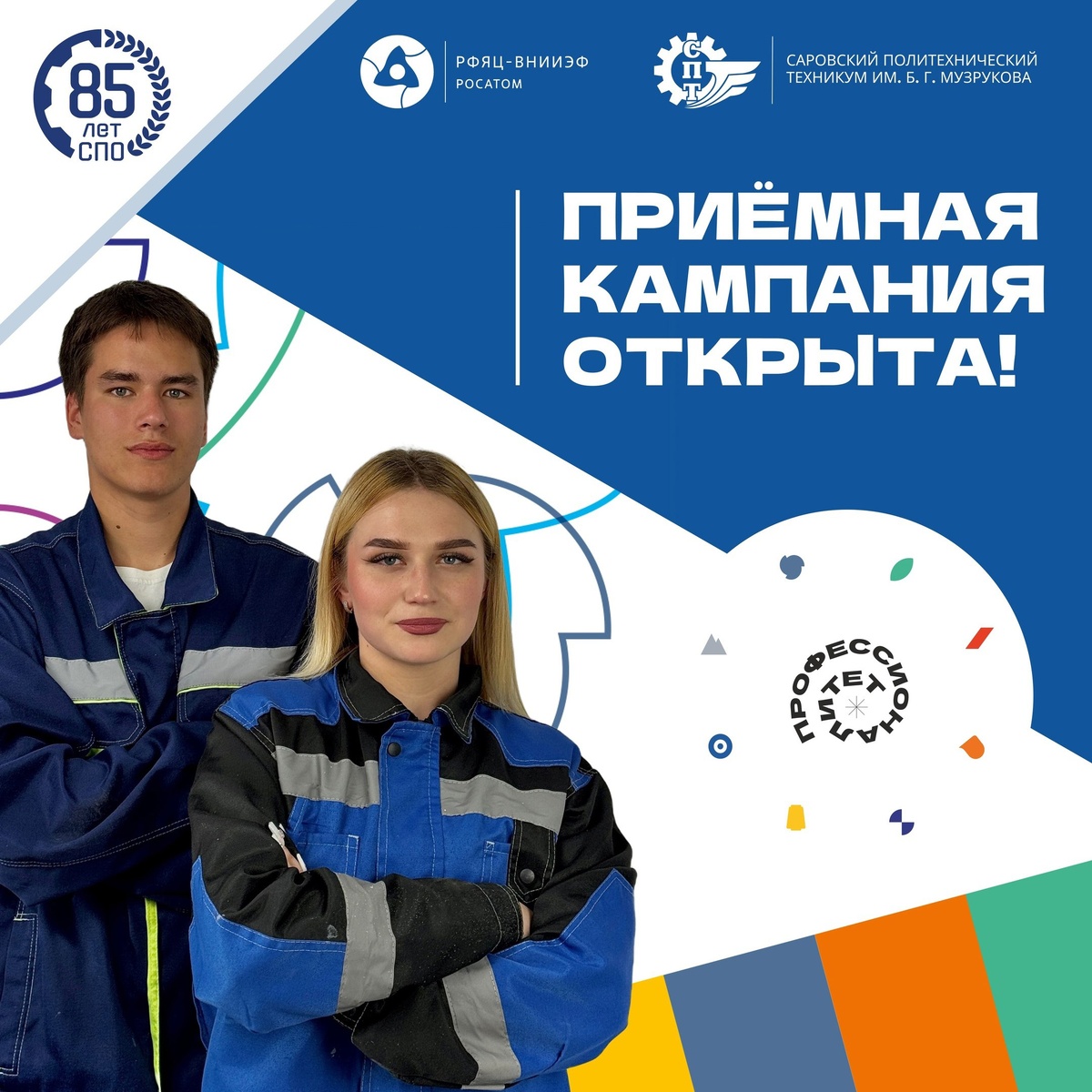 ↗ СПТ им.Б.Г. Музрукова объявляет о начале приемной кампании на новый учебный год В техникуме представлены как бюджетные, так и платные направления по рабочим специальностям. Подробнее о приеме тут: https://sptsarov.ru/to-the-applicant-?ysclid=mbz8dobs6z740738132 Узнать больше о техникуме: https://sarovros.tilda.ws Телефон приемной комиссии: 8 (83130) 38-738 Адрес электронной почты: spt.priem2020@yandex.ru График работы приемной комиссии (ул. Димитрова, 3, кабинет 104): Понедельник — четверг - с 8:00 до 14:00; Пятница - с 8:00 до 13:30; Суббота, воскресенье — выходной.