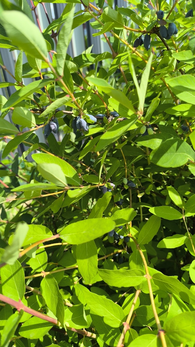 Кусты жимолости у нас всего третий сезон два сорта Лакомка и Лазурная ну если это действительно они не исключаю пересорт, и я год не сильно много но так приятно утром перед завтраком под пенье птичек набрать плошку ягод на завтрак к блинчикам или творогу.