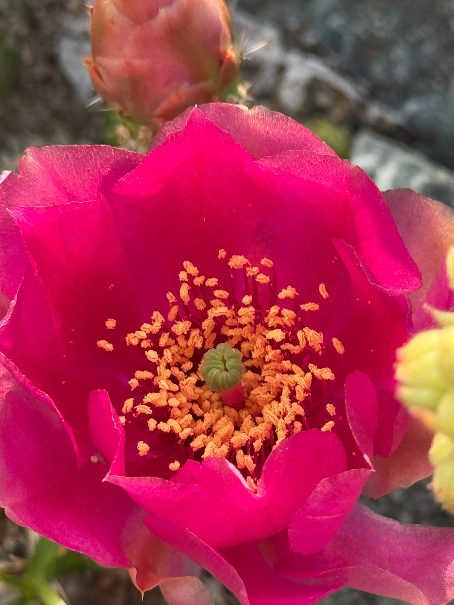 Всем привет! Сегодня у меня небольшие новости про мою клумбу с кактусами и седумами! Пока что только одна опунция раскрывает бутоны, остальные еще готовятся к цветению. Цвет опунции - великолепен! Ранее у меня цвели только опунции с желтыми цветами, поэтому увидеть новые цвета на клумбе - большая радость! На остальных опунциях тоже приличное количество бутонов, и, что самое главное, они появляются не в ущерб приросту новых сегментов! Мне кажется, обильное цветение прошлых лет истощило их, думаю, пора бы провести обрезку седумов, чтобы было больше прироста новых побегов. Думаю, в одной из следующих публикаций надо будет провести сравнение цветения прошлого года и нынешнего, как раз в архивах завалялось много невыложенных фото. Молодила тоже обильно цветут в этом году. Хорошо хоть они нарастили обилие дочерних розеток. Пожалуй, по новостям на сегодня - всё)) В скором времени будет видео-обзор и фото-отчет по суккулентам и клумбе!