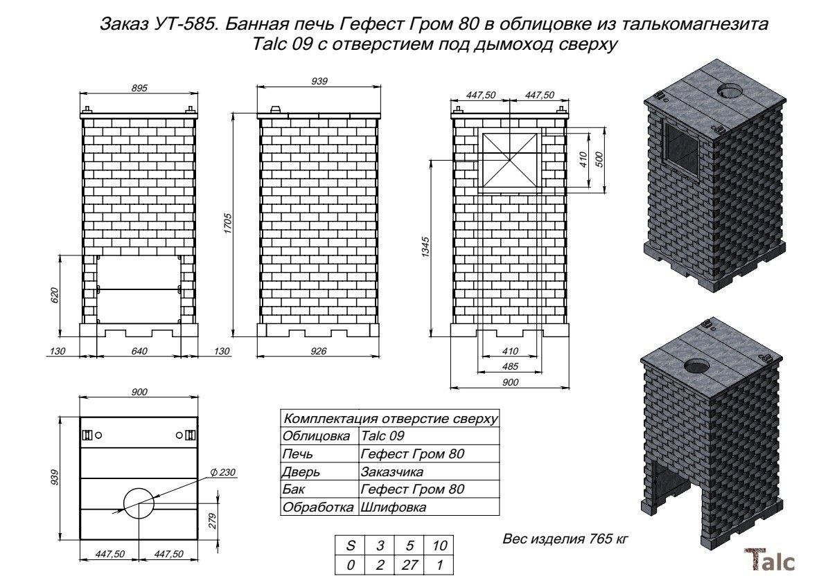 Ещё один Гром-80 запустили в производство. На этот раз заказчику понравилась внешняя обработка облицовки по типу модель Talc-09. В изготовлении участвуют плиты бразильского талькомагнезита толщинами 50мм и 100мм. Дождёмся окончание процесса и посмотрим, что у нас получилось.
