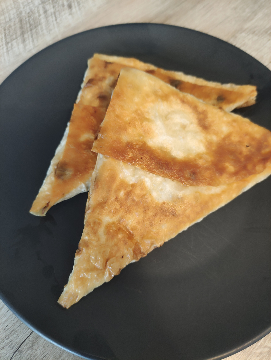 Лаваш нарезать на полосы и выложить фарш, завернуть в виде конверта, если лаваш круглый, сложите пополам 😉. Для склеивания краешка, его можно смочить водой. Можно обжарить на сухой сковороде, запечь в духовке, я смазываю сковороду каплей масла, и тогда конвертики получаются румяные!