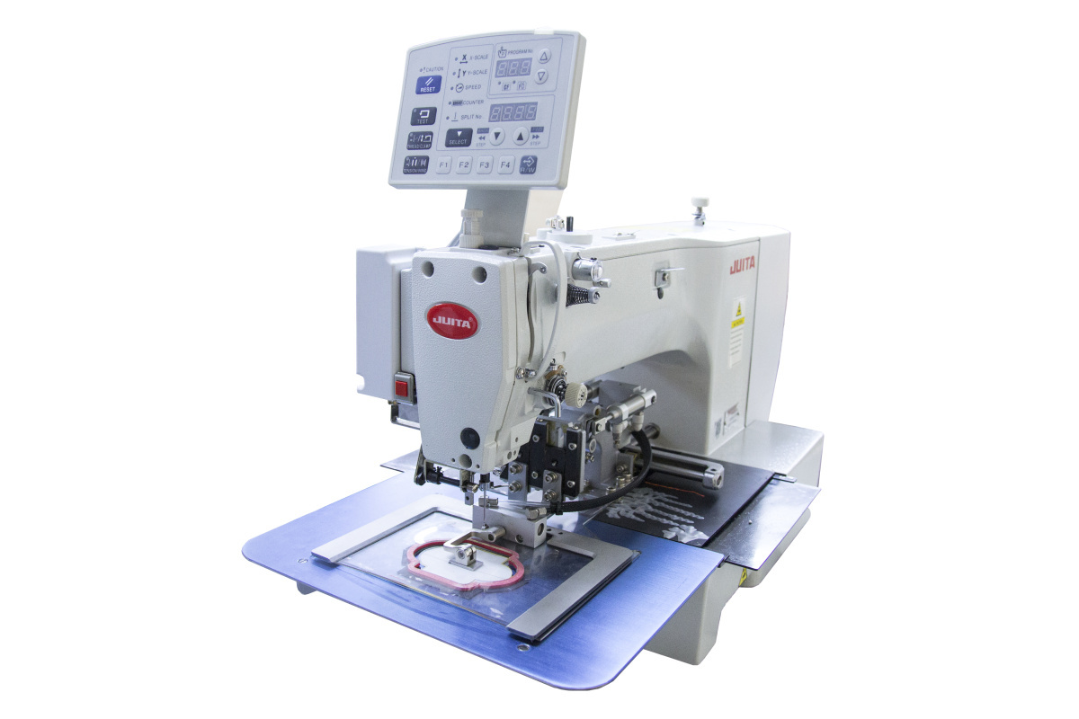 JUITA JT-1510G-01A – это автоматизированная этикеточная (закрепочная) машина челночного стежка с ЧПУ, предназначенная для высокоточного пришивания этикеток, лейблов, шевронов и других мелких деталей по заданному контуру. Разработана для работы с легкими и средне-легкими материалами. Если требуется оборудование для работы с толстыми стропами и тяжелыми материалами, рекомендуем оборудование фирмы HIGHTEX. Основные характеристики JUITA JT-1510G-01A : Машина может быть оснащена двумя видами лапок: Преимущества: Идеально подходит для этикеток из тонких и скользких материалов, обеспечивая надежное удержание.