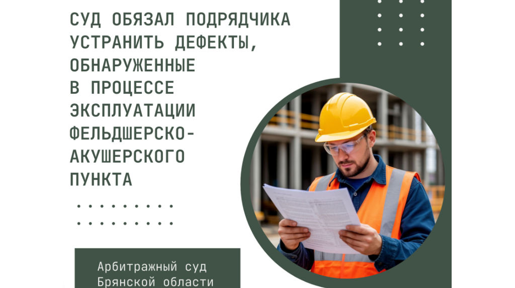 «Строймаркет» выполнил обязательства, а заказчик принял работы. Однако в июле прошлого года в рамках гарантийного срока были выявлены дефекты работ. Досудебная претензия об устранении недостатков была оставлена ответчиком без удовлетворения. Рассмотрев дело, суд удовлетворил иск. Решение не вступило пока в законную силу. Суд обязал подрядчика устранить дефекты при эксплуатации ФАПа в Клетнянском районе