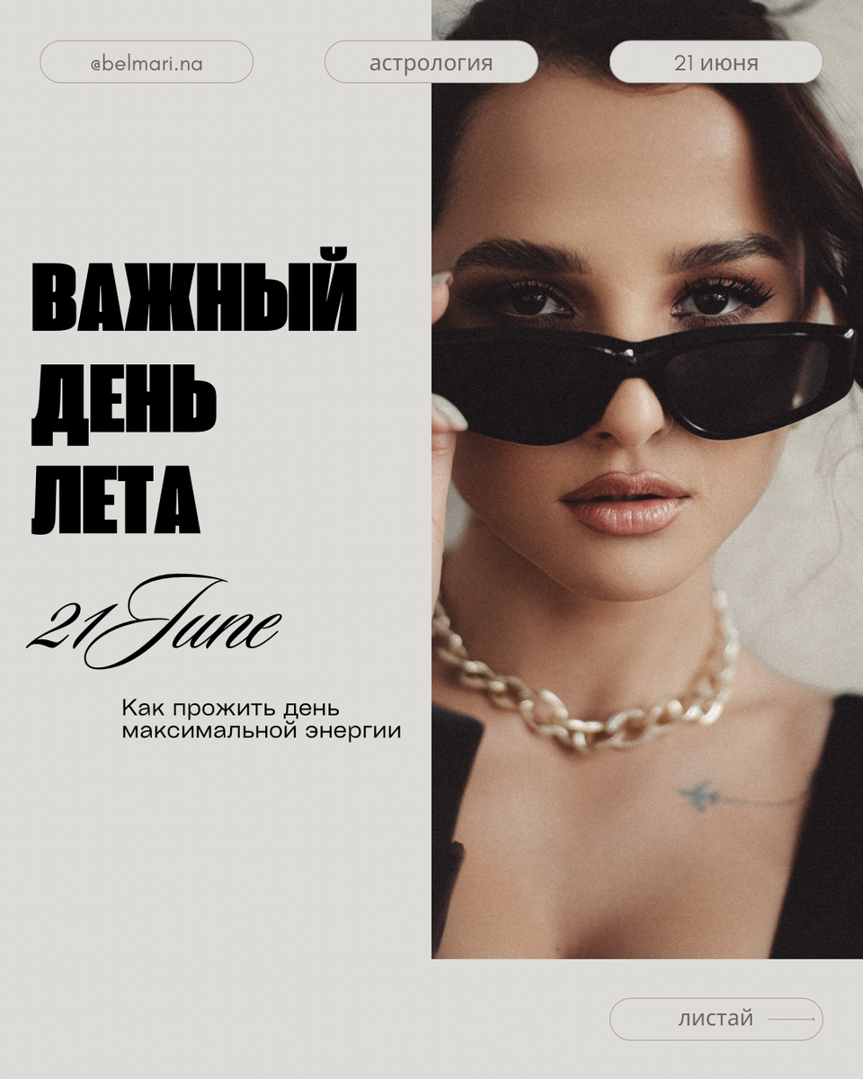 21 июня 📆 Самый длинный день в году — это не просто смена света и тени, это момент, когда солнечная энергия замирает на пике, будто делая глубокий вдох… чтобы что-то внутри нас тоже замерло — и переродилось. Солнцестояние — это зеркало вашего состояния. Всё, что вы думаете, на что смотрите, о чём молчите — в этот день становится громче, а, значит, день требует не спешки, а присутствия. Наведите свет внутри и снаружи – разложите то, что давно откладывалась на «потом»: полка, шкаф, угол в телефоне – откройте окна, помойте стекла, отпустите то, что больше не отражает вас → свет приходит туда, где его ждут. И не только в дом, но и в сердце. Встретьтесь с собой: подведите внутренние итоги – что за это полугодие вы поняли о себе? – что хотите оставить, как отжившее? – и что берёте с собой в следующий виток? → Не гонитесь за «успехами». Оглянитесь на рост, на глубину, на честность с собой. Выберите день тишины — до или в день солнцестояния 30 минут без фона. Без ленты новос
