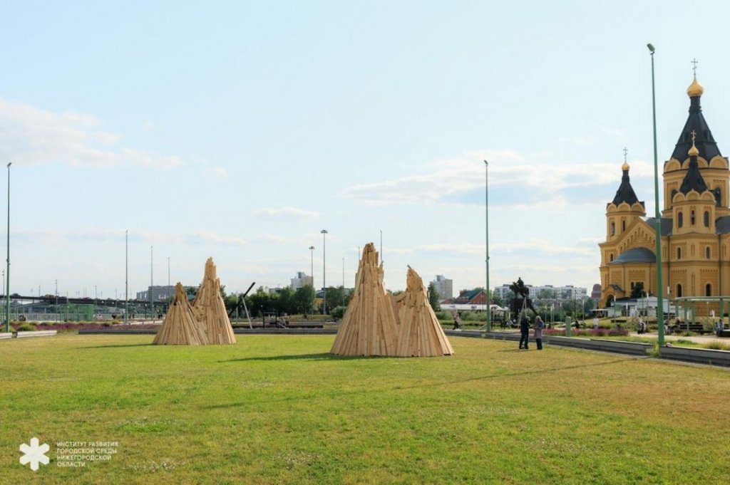 Скульптуры в виде деревянных башен вызвали недоумение у нижегородцев