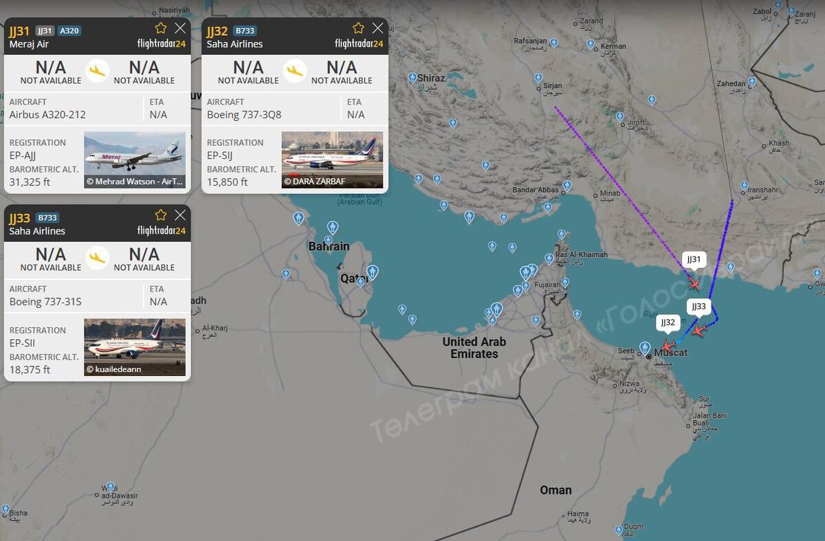 За последние 48 часов из Ирана в Оман вылетело 6 самолетов
