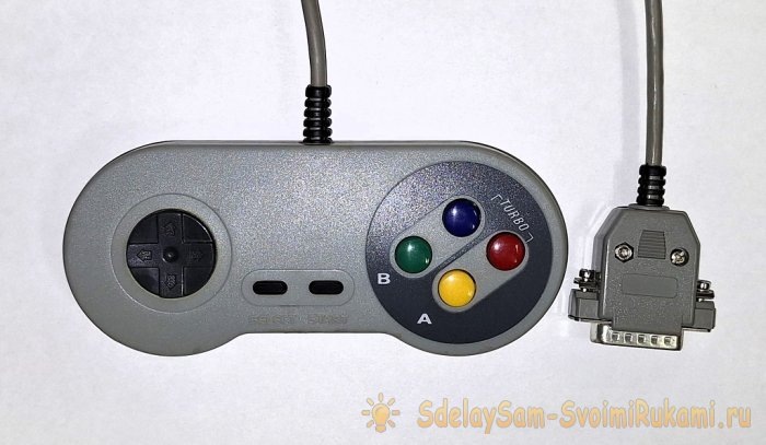 Интерфейс игрового порта, в виде плат расширения для персонального компьютера, был предложен ещё в восьмидесятых годах прошлого века. На протяжении двух десятилетий присутствовал практически в любом ПК. Отказ от массового использования произошёл в относительно недавнее время и совпал с прекращением эксплуатации систем на Windows XP. Сейчас энтузиасты собирают, ремонтируют и коллекционируют старую вычислительную технику. Многие люди с теплотой и чувством светлой ностальгии вспоминают старые игры. Геймпад позволит расширить прежний игровой опыт и замечательно подойдёт для аркад, скроллеров и гонок. Схема устройства довольно лаконична, содержит минимум деталей и проста для повторения. Игровой манипулятор от восьмибитной игровой приставки необходимо разобрать. Извлечь плату и отпаять от неё кабель подключения. Сверяясь с планом на представленном рисунке, подготовить плату к монтажу схемы. Скальпелем перерезать проводники, исходящие от микросхемы контроллера. Зачистить и залудить монтажные