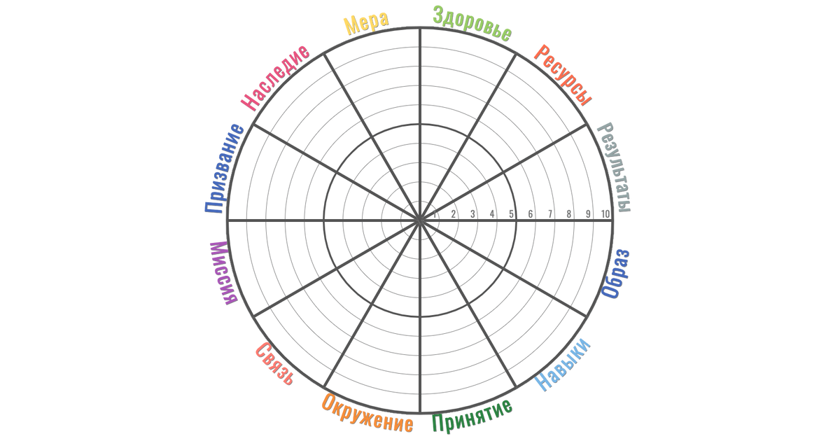 Я думаю, многим знаком коучинговый инструмент под названием «Колесо баланса». Это простая, но очень мощная методика. Мы рисуем круг и делим его на 8–12 секторов - это сферы нашей жизни: здоровье, финансы, карьера, любовь, друзья, саморазвитие, духовность, отдых и т.д. Затем мы субъективно оцениваем, насколько удовлетворены каждой из этих сфер - по шкале от 1 до 10.