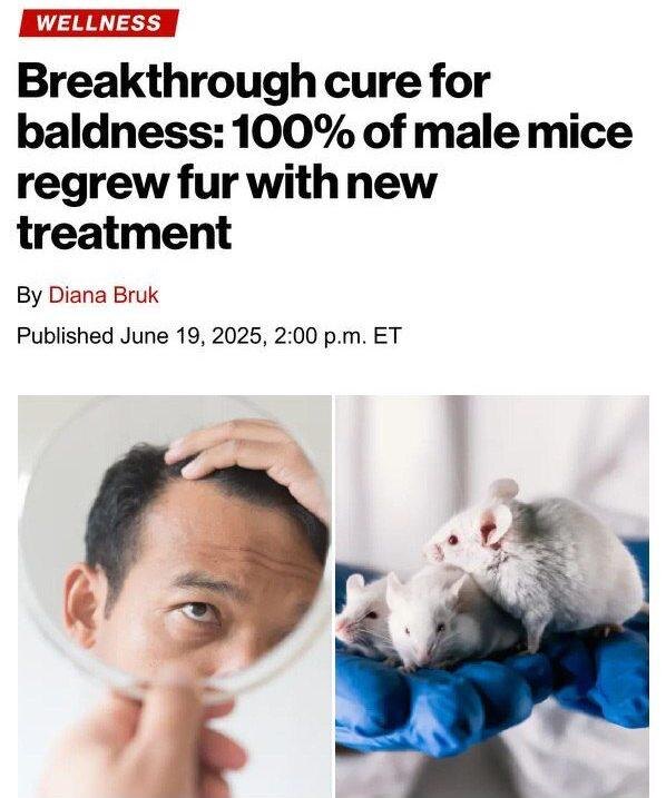 ⚡️ Облысение окончательно ПОБЕЖДЕНО — учёные из Испании разработали препарат, который заставил волосы расти заново у 100% (!) испытуемых. В основе — энергетическая молекула АТФ и стволовые клетки из жировой ткани. Результаты настолько мощные, что эксперты уже говорят: это может стать альтернативой пересадке волос. У 100% испытуемых мышей снова начали расти волосы: у одних шёрстка восстановилась полностью, у других зафиксирован сильный, ускоренный рост. Тесты на людях уже скоро. Запускаем процесс дескуфизации. 👍 SAS