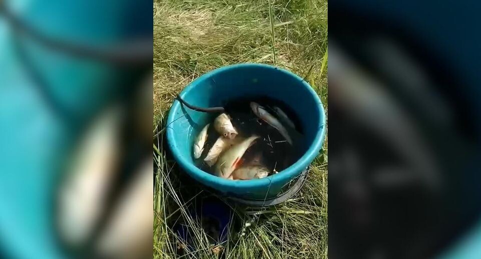 Змея в Башкирии утащила улов из ведра рыбака и попала на видео